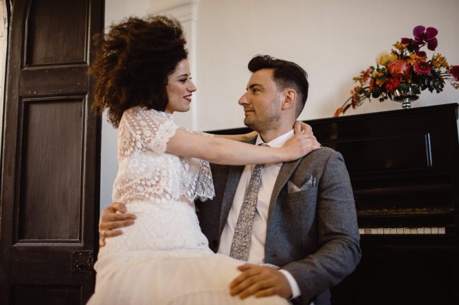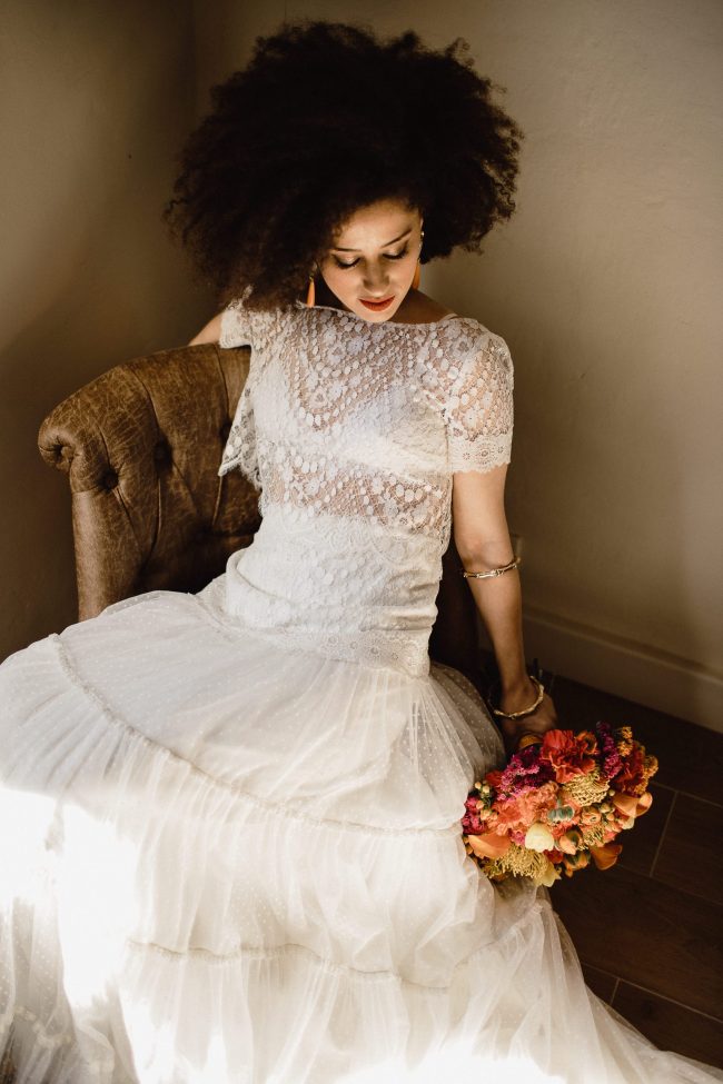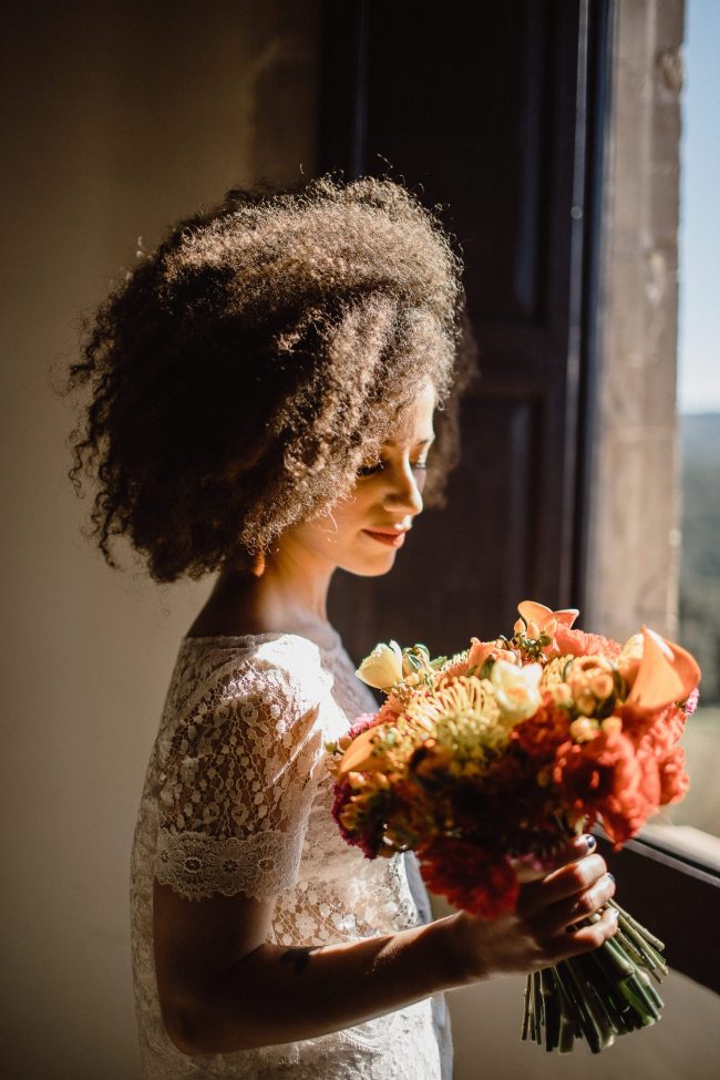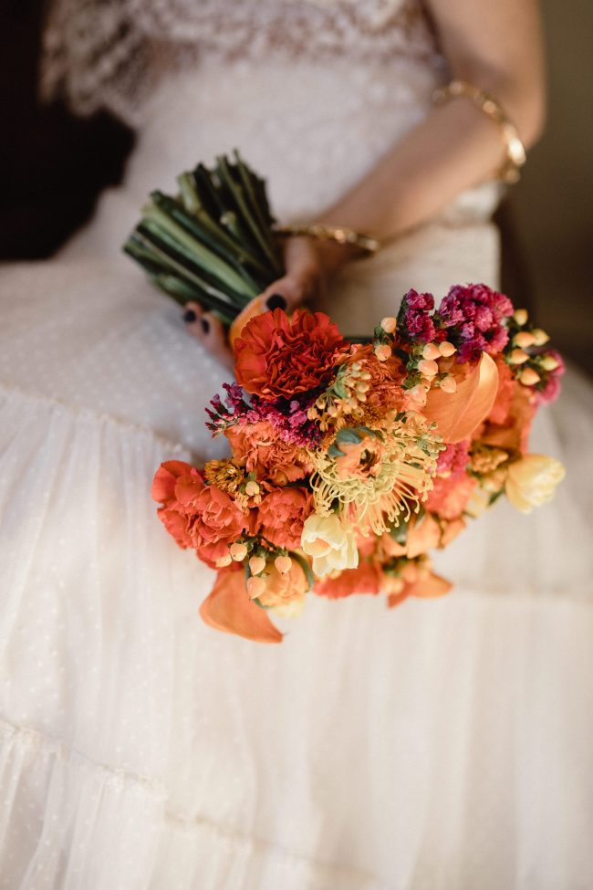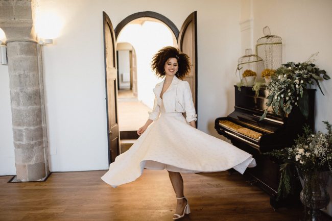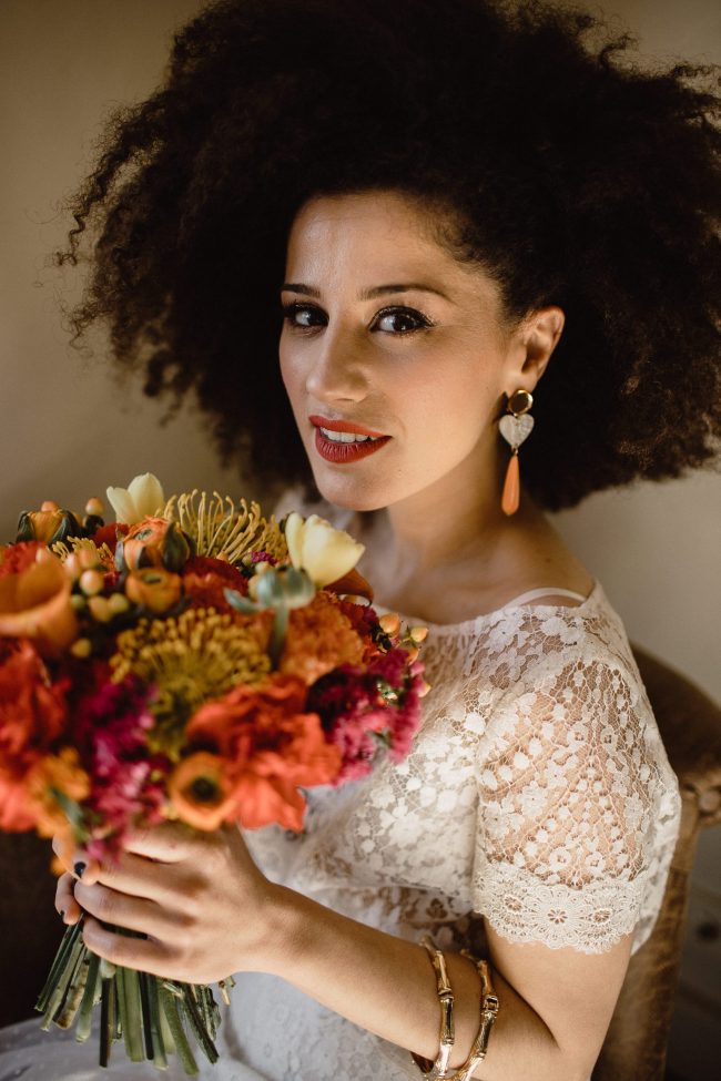 Para ello, se han optado por varios ramos de novia, un circular texturizado y otro en forma de gota y de carácter extravagante.