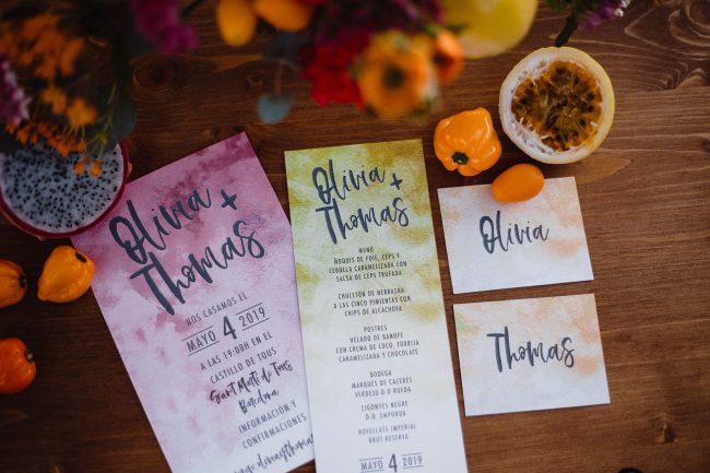 En un entorno como el Castell de Tous donde la madera, la piedra y los tonos cálidos dominan el entorno, se ha diseñado una boda juvenil y divertida con numerosos toques de vitalidad.