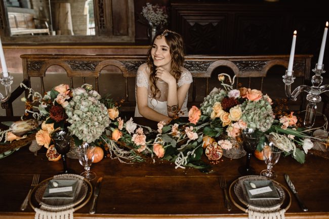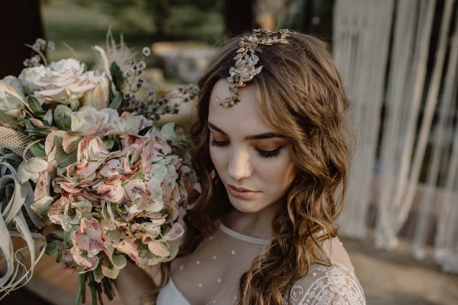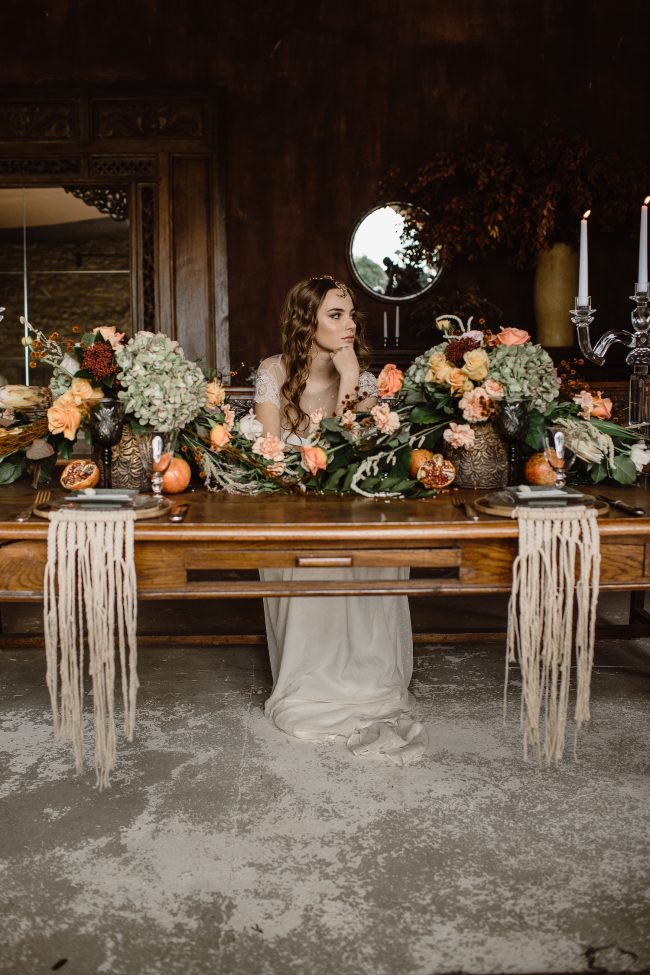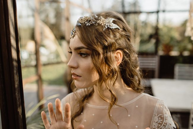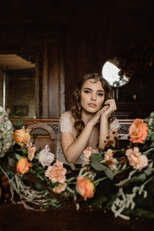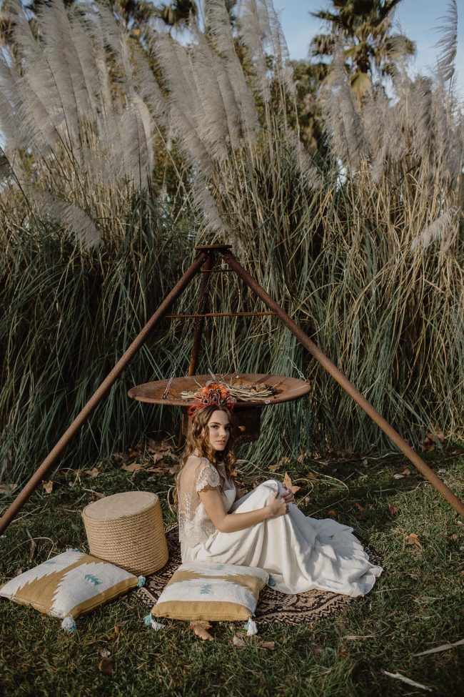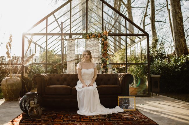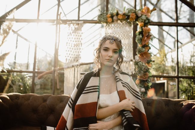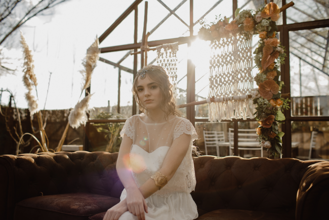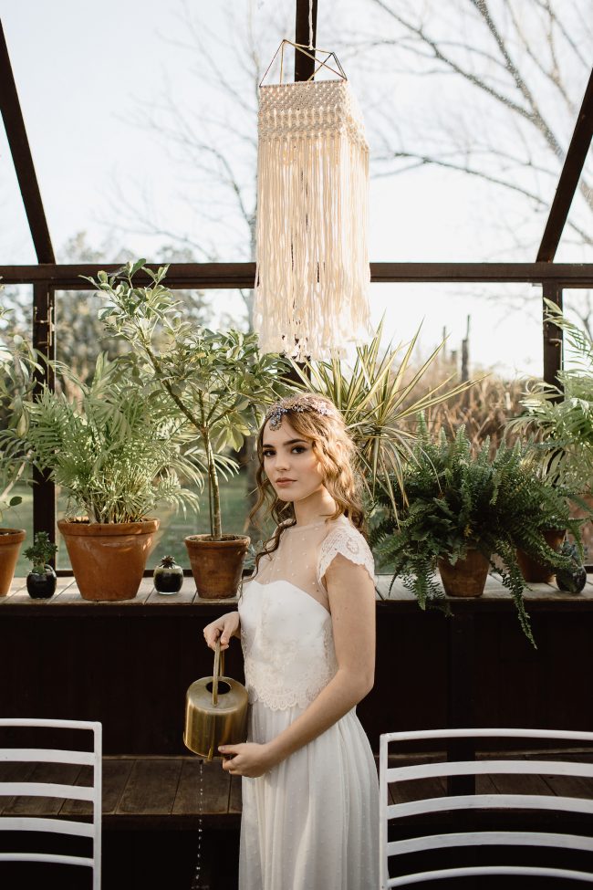 El invernadero presente en CortalGran fue el escenario perfecto para este reportaje, donde se aprecia una novia bohemia y romántica con un toque trasngresor.